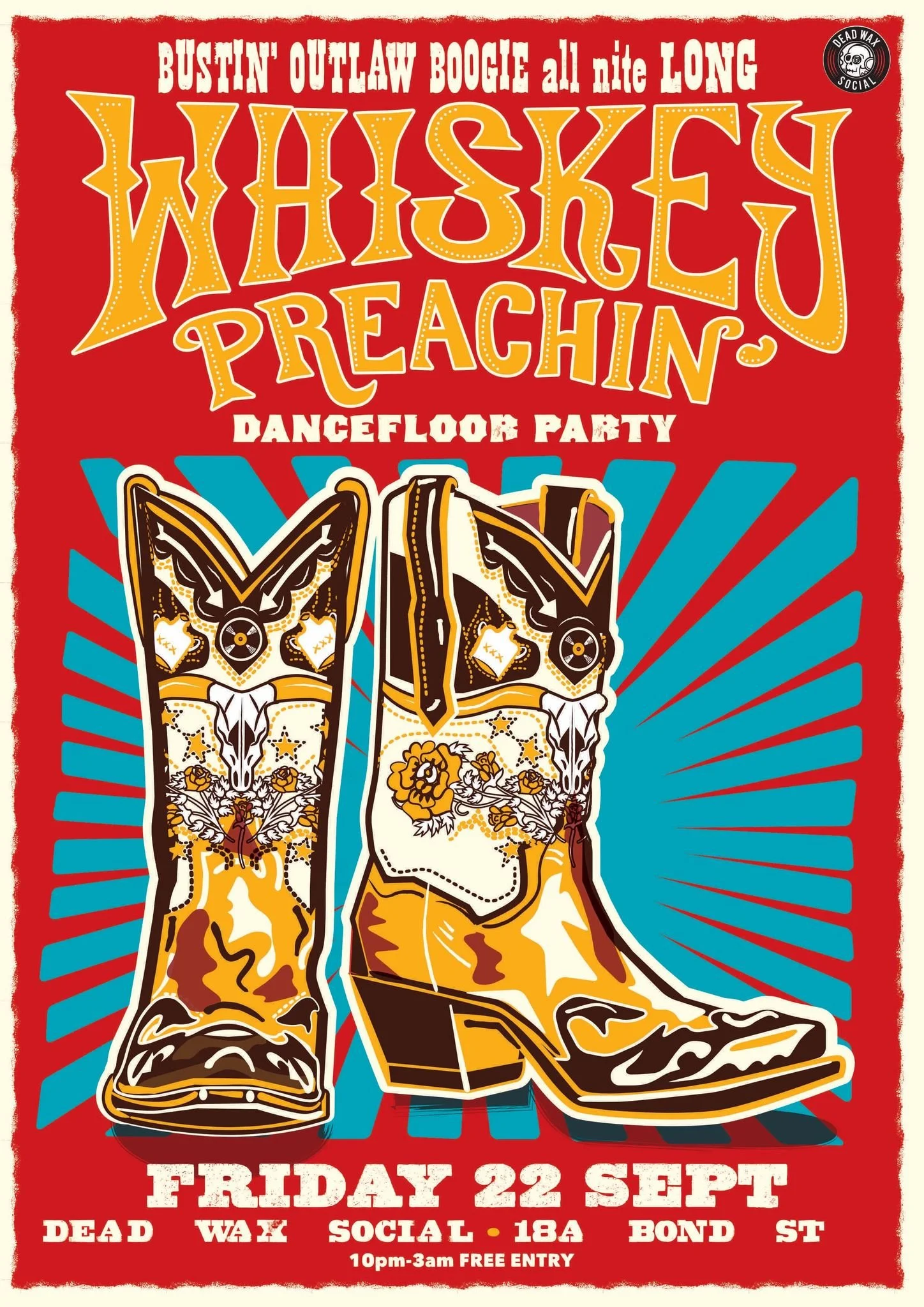 Resident DJ’s of the Great Eastern are Bringing Whiskey Preachin’ back to the Dead Wax Dancefloor for a night of Bustin’ Outlaw Boogie